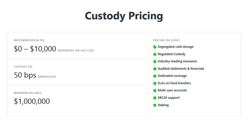 Coinbase also offer custody for cryptocurrency assets for institutions in the form of their custody program, which charges a setup fee of $100,000 and a minimum holding of $10million so you can see it is aimed at banks, hedge funds and other finance institutions who would require such a service.