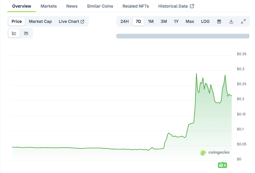 The token saw a 400.47% increase over the past week, followed by a 5.77% drop in the last 24 hours. The sharp price movement suggests strong speculation ahead of the structural changes.
